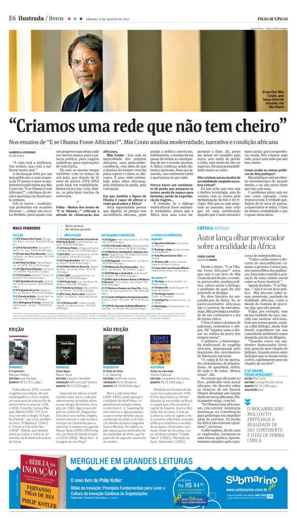 Entrevista com o escritor moçambicano Mia Couto. Publicado em agosto de 2011 na Folha de São Paulo.