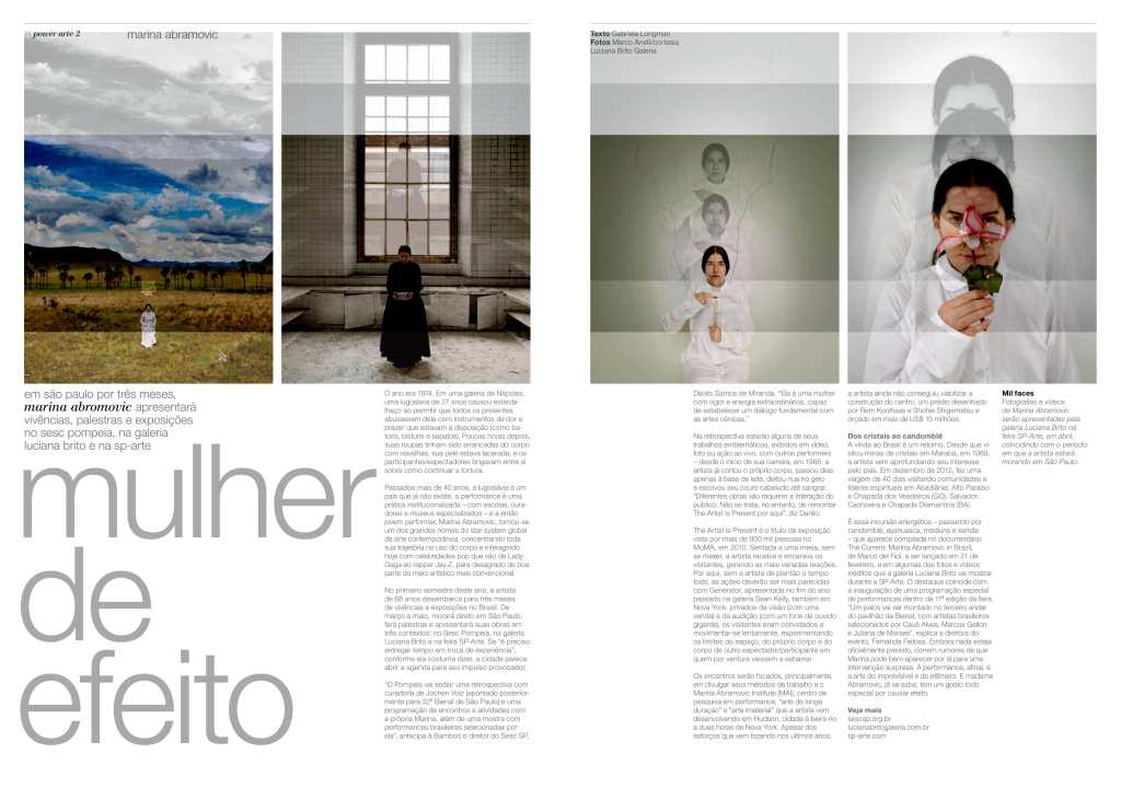 reportagem sobre a temporada de Marina Abramovic no Brasil, entrevista com o diretor do Sesc-SP Danilo Santos de Miranda. Revista Bamboo, 2015