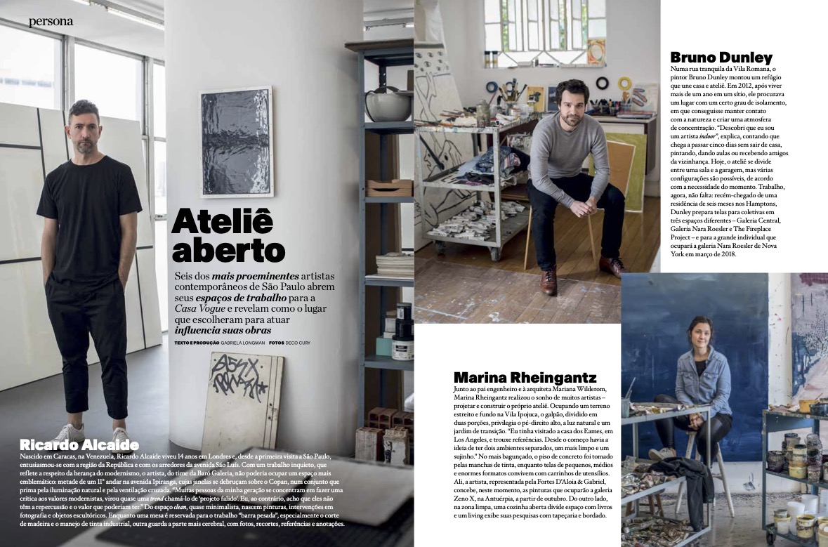 Mini perfis de seis artistas visuais e seus ateliês em São Paulo. Reportagem realizada para a revista Casa Vogue.