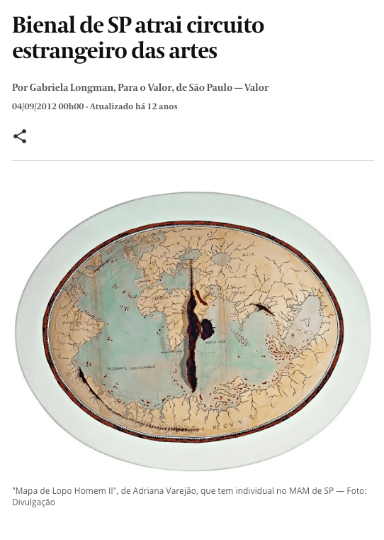 Reportagem sobre o circuito de mostras e feiras paralelas à abertura da 30ª edição da Bienal de São Paulo, entrevista com Nicolas Galley e Monica Smanhotto. Valor Econômico, 2012. texto completo aqui .